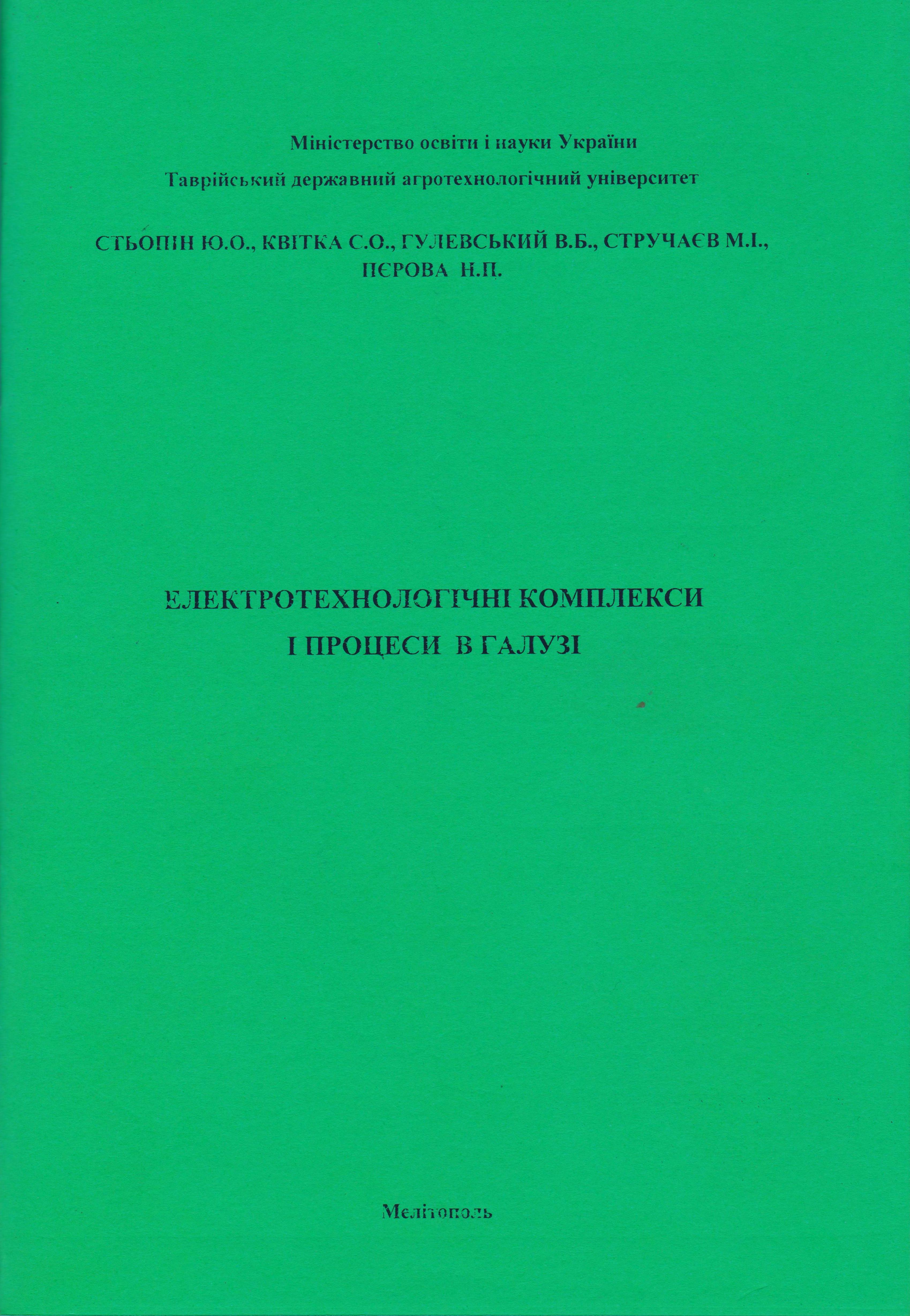 Електротехнологічні комплекси і процеси в галузі: Методичні вказівки до практичних робіт для здобувачів ступеня вищої освіти «Магістр» зі спеціальності 141 – “Електроенергетика, електротехніка та електромеханіка” / Ю.О. Стьопін, С.О. Квітка, В.Б. Гулевський, М.І. Стручаєв, Н. П. Пєрова – Мелітополь: ТДАТУ, 2019. – 100 с.