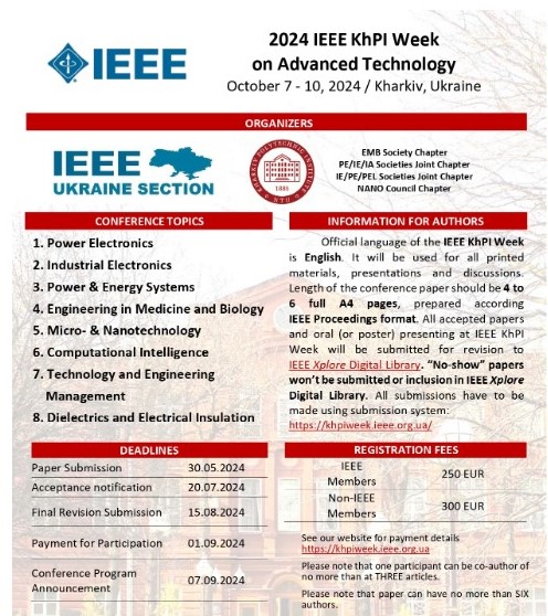 УЧАСТЬ ВИКЛАДАЧІВ КАФЕДРИ У РОБОТІ МІЖНАРОДНОЇ НАУКОВОЇ КОНФЕРЕНЦІЇ З ЕНЕРГЕТИКИ, ЕЛЕКТРОНІКИ ТА СУЧАСНИХ ТЕХНОЛОГІЙ «IEEE 5th KhPI Week on Advanced Technology»