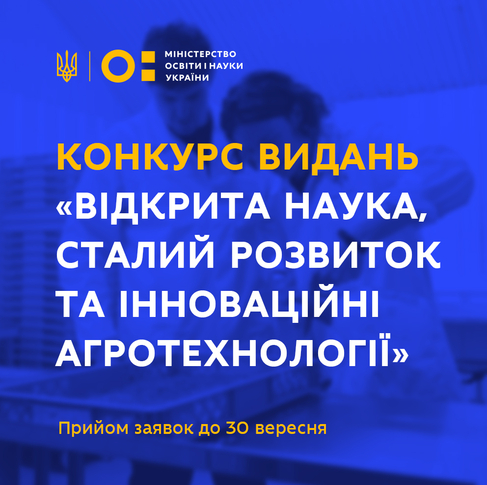 Триває прийом заявок на конкурс наукових та навчальних видань «Відкрита наука, сталий розвиток та інноваційні агротехнології»