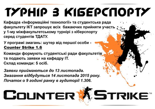 Вперше у ТДАТУ! Міжфакультетський турнір з кіберспорту відбудеться 14 листопада о 9.00 в ауд. 1.306.