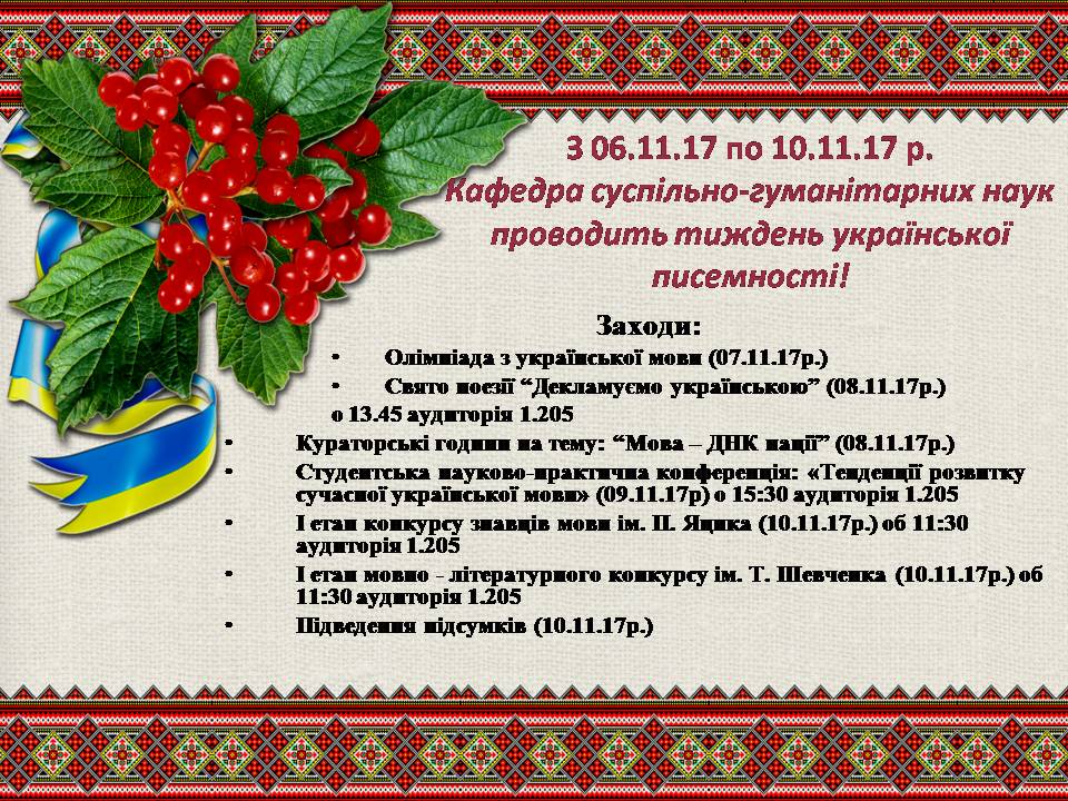 Кафедра суспільно-гуманітарних наук проводить тиждень української писемності!