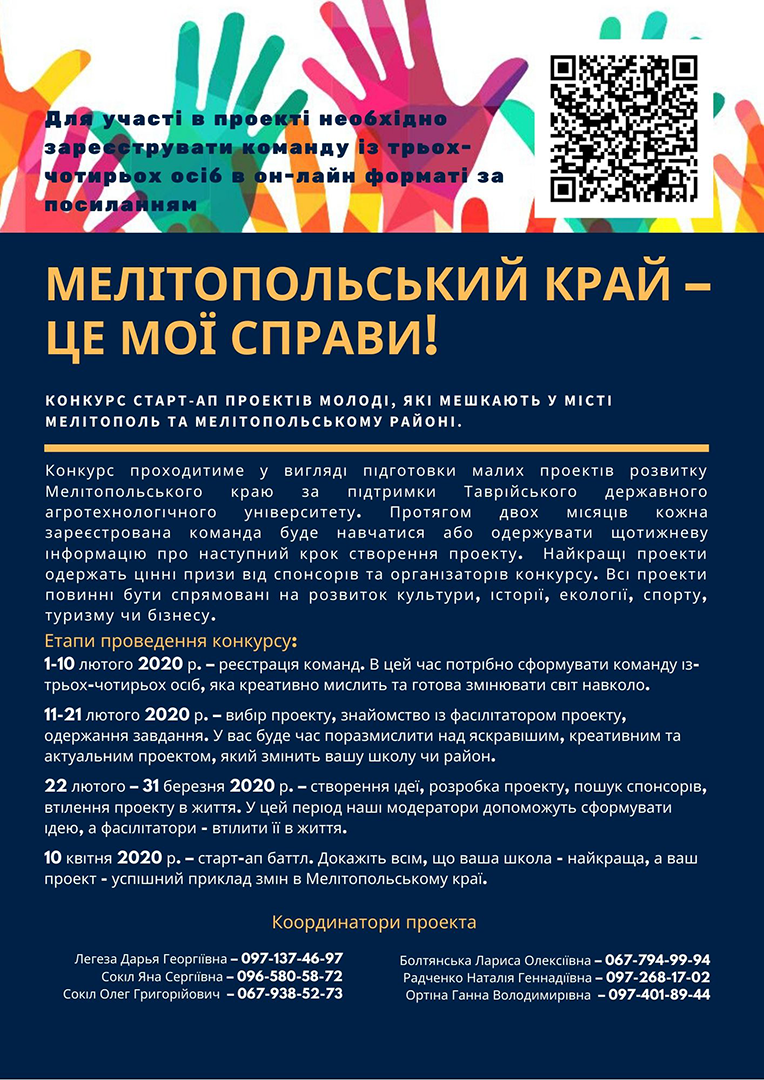 Конкурс старт-ап проектів молоді, які мешкають у місті Мелітополь та Мелітопольському районі.