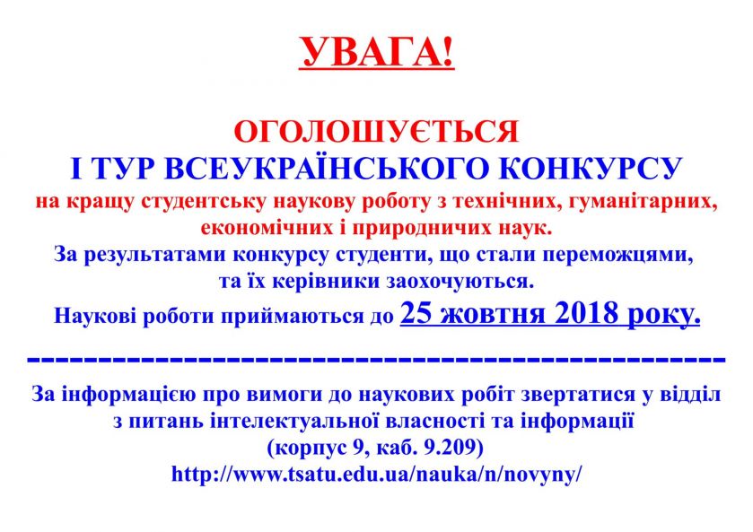 Оголошується Всеукраїнський конкурс на кращу студентську наукову роботу