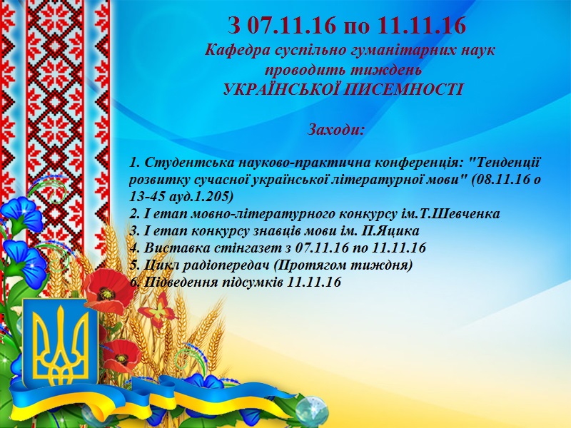 7-11 листопада 2016 року відбудеться тиждень української писемності