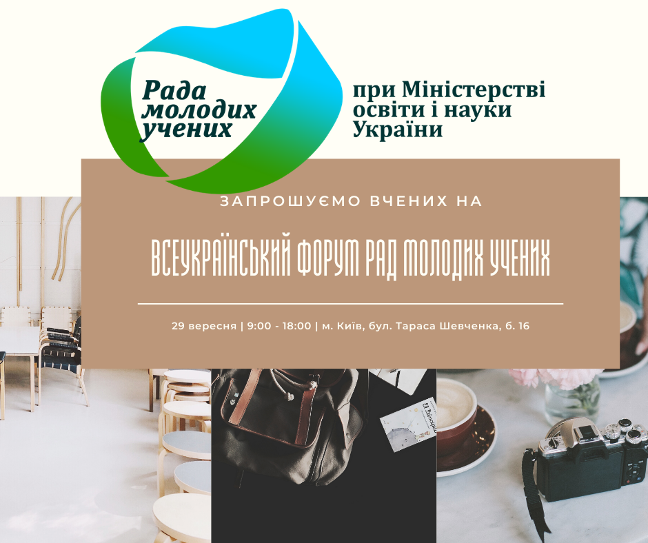 29 вересня 2020 р. відбудеться Всеукраїнський форум Рад молодих учених в Міністерстві освіти та науки України за участі представників Міністерства, Ради молодих учених при МОН України, Рад молодих учених областей, міст та закладів вищої освіти/наукових установ, а також молодих учених, зацікавлених у створенні Рад молодих учених в інституціях, які вони представляють.