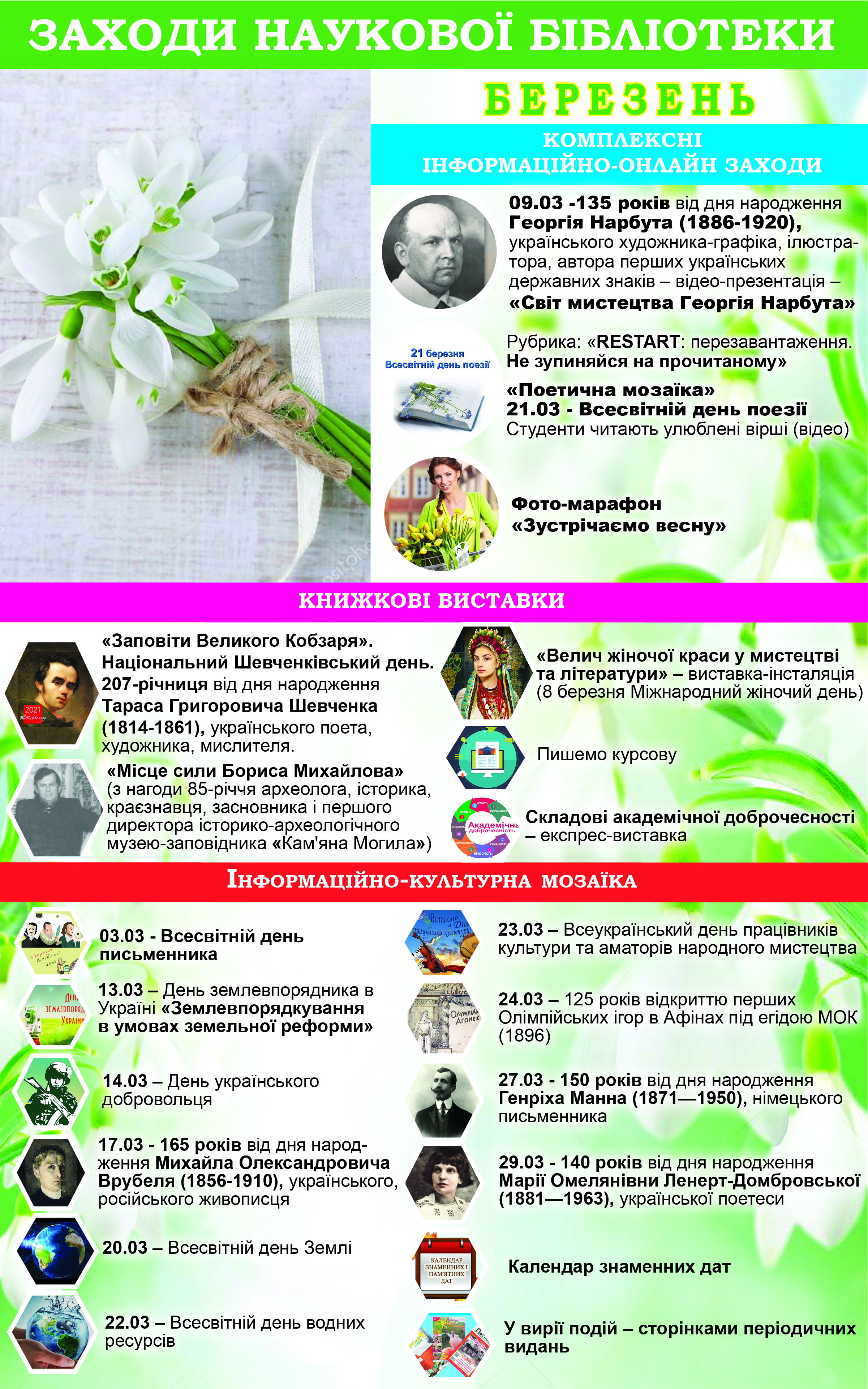Заходи наукової бібліотеки на березень 2021р.