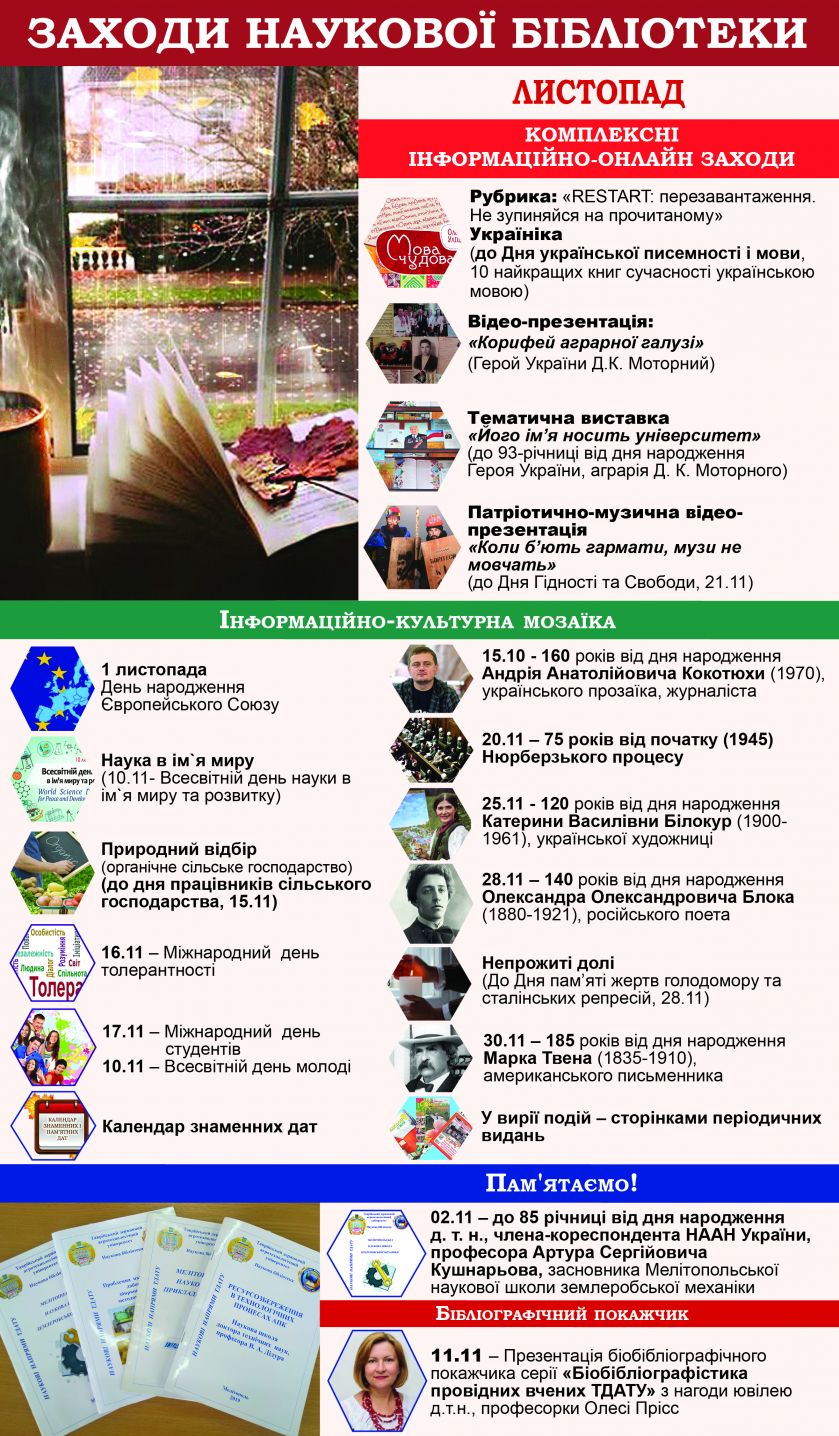 План організаційних заходів ТДАТУ на листопад 2020 року