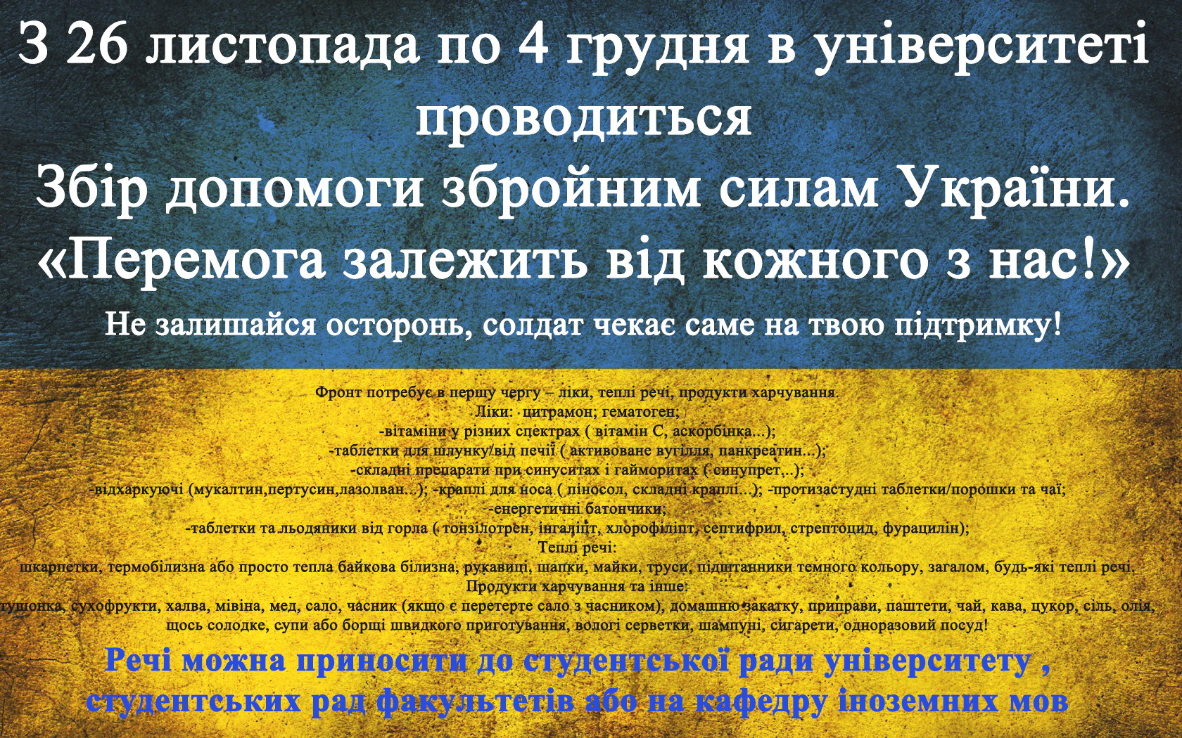 26 листопада – 4 грудня – акція зі збору допомоги Збройним силам України.