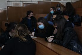 Оцінювали наших ерудитів представники студентської ради ФЕБ, секретар ради Анастасія Клімова та голова студентського профбюро факультету Рената Гришко.