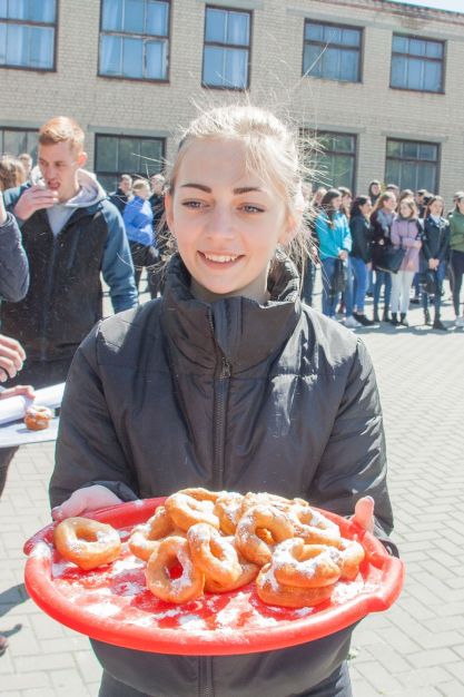 Звичайно, не обійшлося без виступів талановитих студентів. Анастасія Скляренко заспівала пісню, під час якої, усіх присутніх пригостили цукерками та смачними пончиками, виготовленими на рослинному маслі DANKEN, а студентська рада АТЕ підготувала запальний флешмоб. Руслана Кольцова подарувала яскравий танець з пої-прапорами. Ми ще раз переконались у тому що на факультеті навчаються найталановитіші студенти ТДАТУ.
