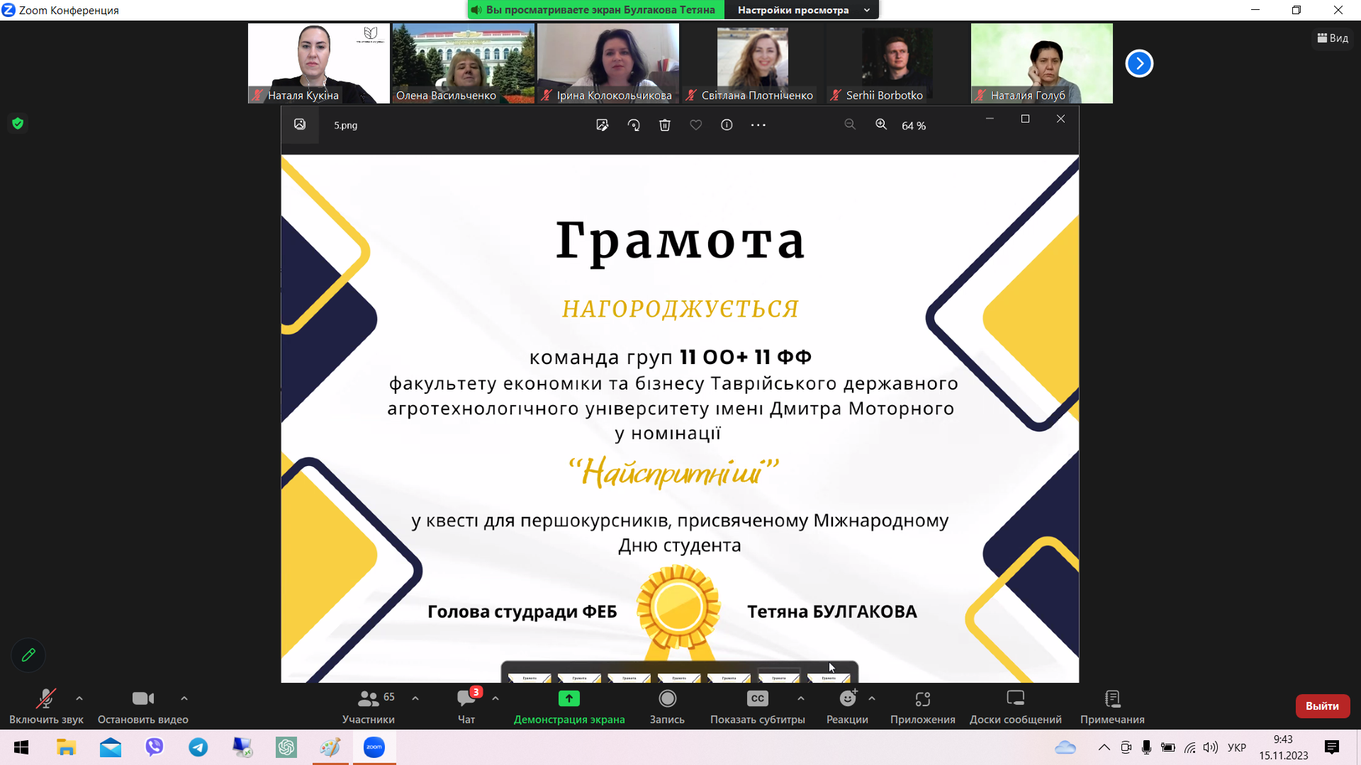 З початку тижня 14-15.11.2023 напередодні свята на факультеті економіки та бізнесу Таврійського державного агротехнологічного університету імені Дмитра Моторного було проведено традиційний квест першокурсників та загальну святкову кураторську годину.