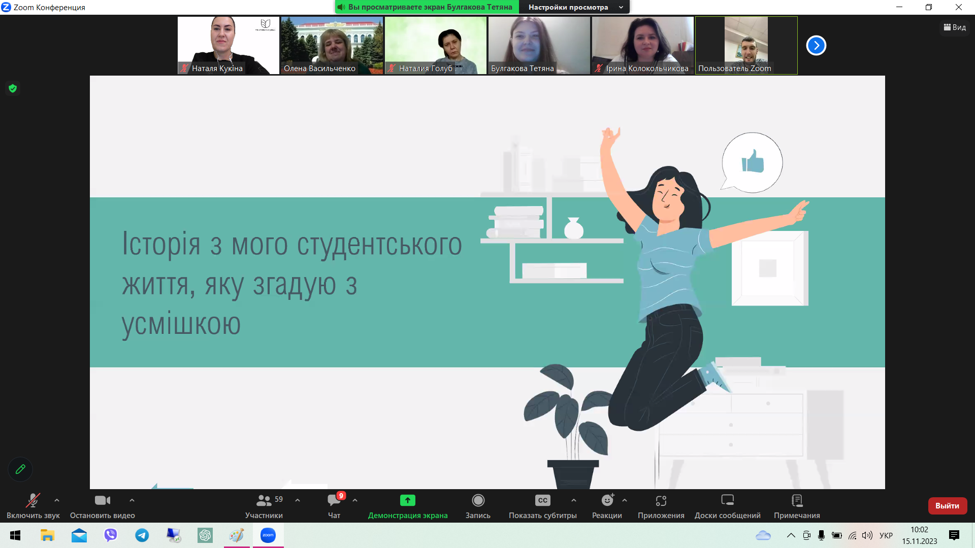 Святкову кураторську годину відкрила декан факультету д.е.н., професор Ірина КОЛОКОЛЬЧИКОВА. Вона привітала студентів зі святом, побажала усім присутнім не втрачати оптимізму навіть за складних реалій сьогодення, впевнено крокувати до поставленої мети та вести активне студентське життя, щоб потім було що згадати.