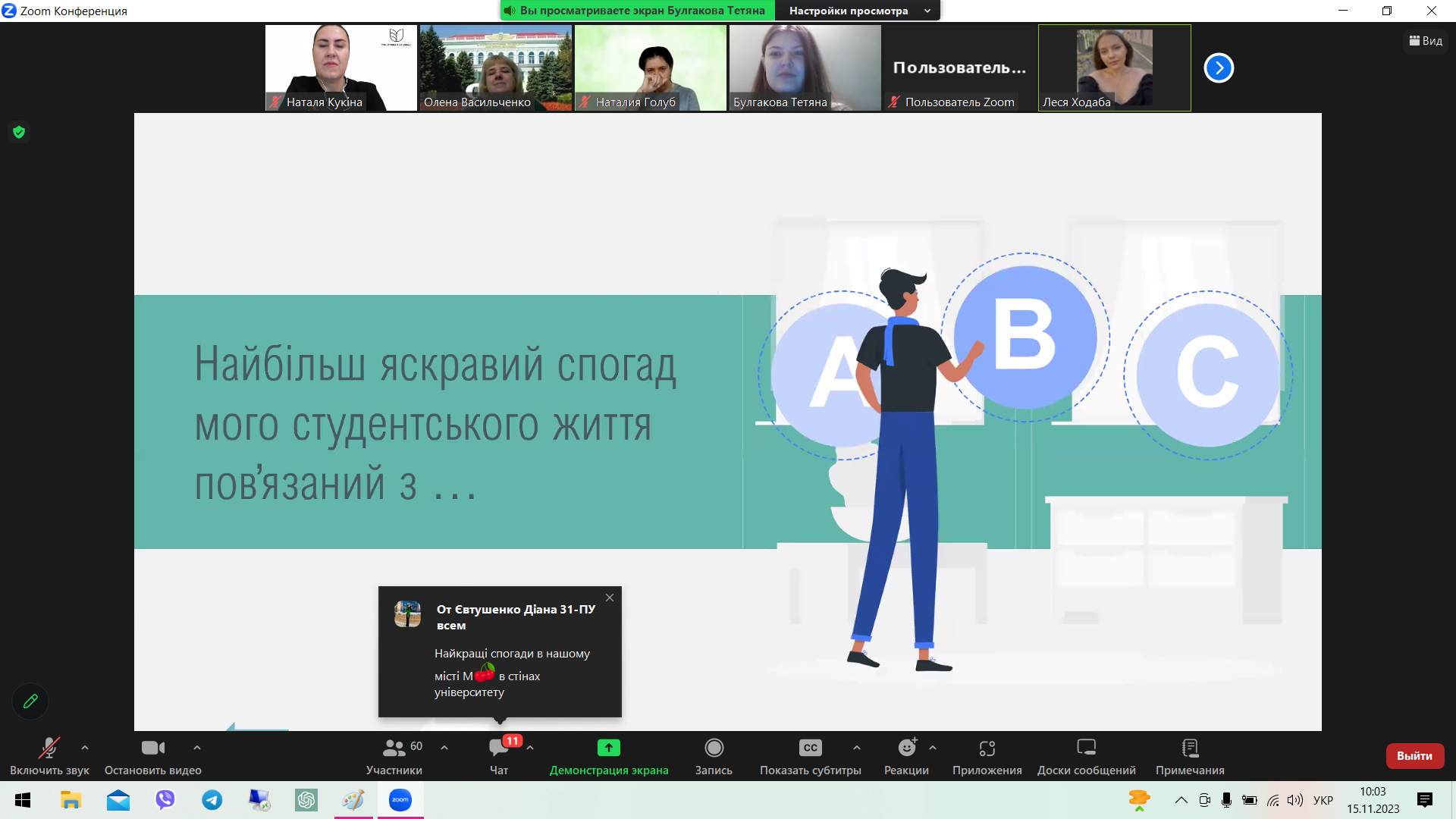 Тетяна оголосила результати квесту першокурсників, що відбувся напередодні.