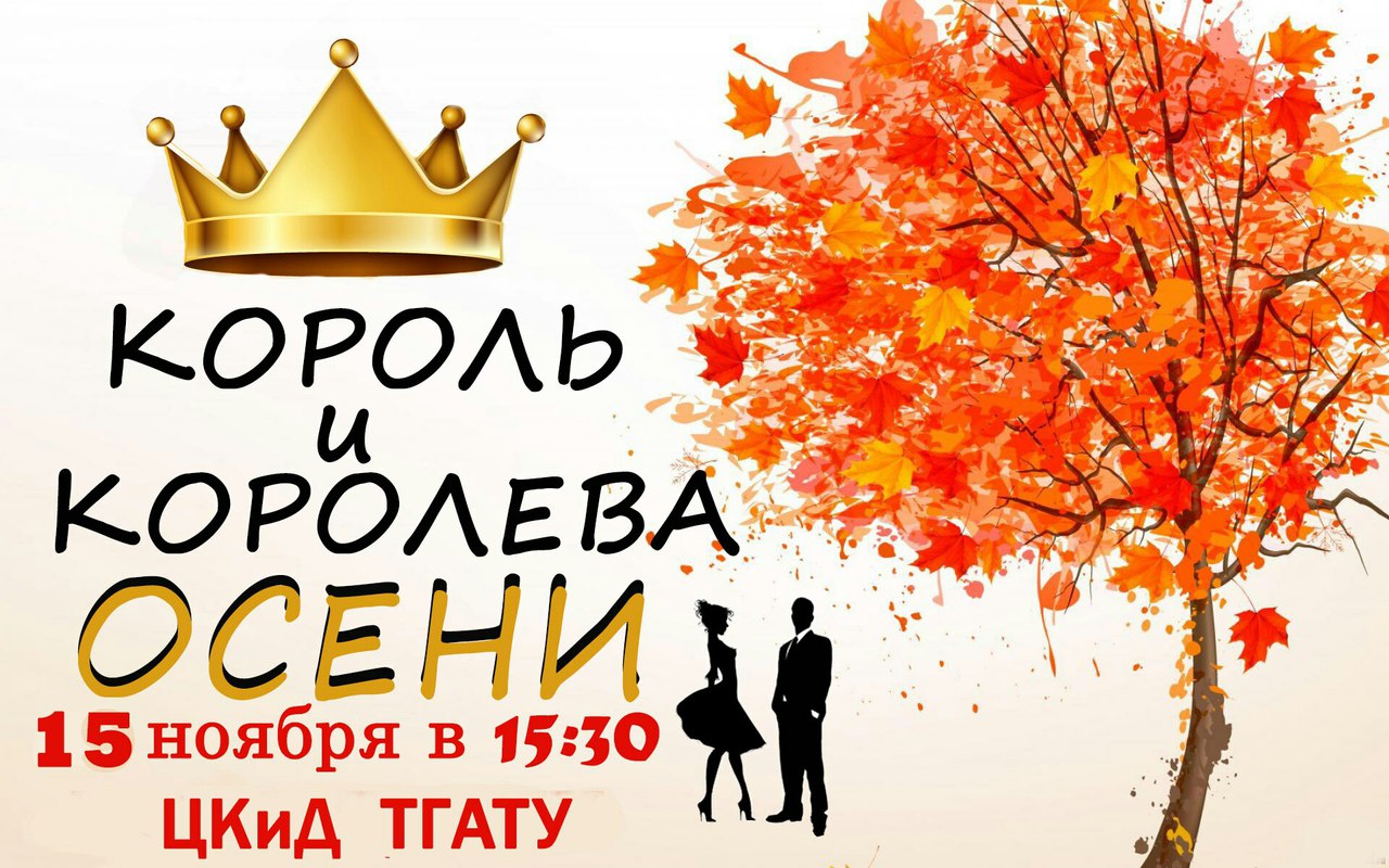Король і Королева Осені – 15 листопада 4.11.2016 Король і Королева Осені. Учасники дуже потребують вашої підтримки. Приходь і підтримай пару свого факультету!