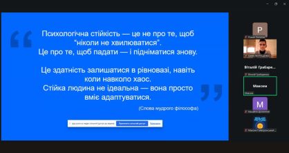 Під час зустрічі Максим пояснив, що психологічна стійкість — це не про відсутність тривоги чи труднощів, а про вміння відновлювати рівновагу і продовжувати діяти, навіть коли навколо хаос.
