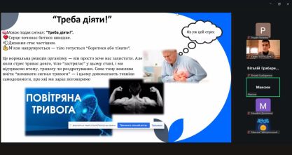 Учасники дізналися, як працюють реакції організму під час стресу, чому наш мозок «вмикає режим виживання» і що можна зробити, аби повернути контроль над емоціями та тілом.