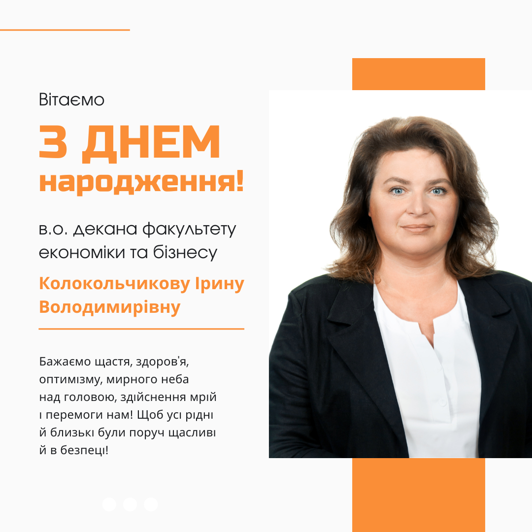 Вітаємо з днем народження в.о. декана факультету економіки та бізнесу Колокольчикову Ірину Володимирівну 6.07.2023