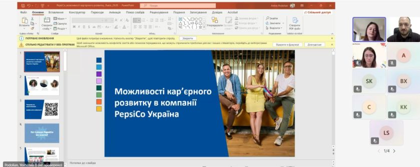 29 травня 2025р. з метою опанування фахових компетентностей та програмних результатів навчальних практик з ОПП «Економічний консалтинг та бізнес – економіка», «Підприємство та бізнес – технології», «Маркетинг», «Менеджмент», «Облік і оподаткування», «Фінанси, банківська справа та страхування» здобувачі 1-3 курсів зустрілися з представниками компанії PepsiCo Україна – одного з лідерів харчової промисловості та роздрібної торгівлі в Україні.
