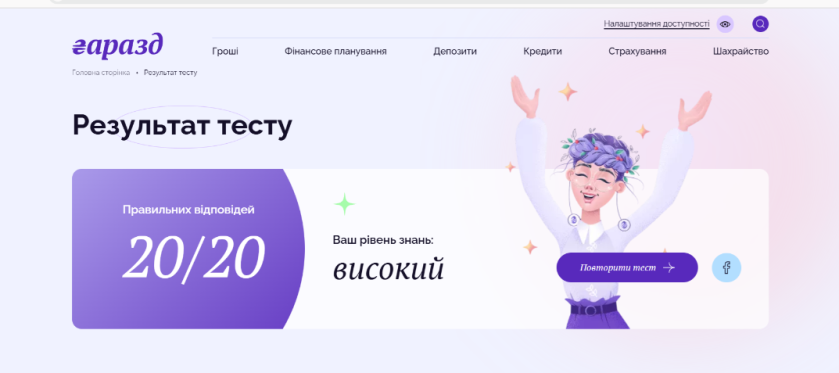 Тестові завдання були розроблені викладачами кафедри з урахуванням актуальних тенденцій у фінансовій сфері. Після проходження тесту учасники отримали аналітичні рекомендації та поради, які допоможуть ефективніше керувати власними фінансами, уникати поширених помилок та свідомо приймати економічні рішення.