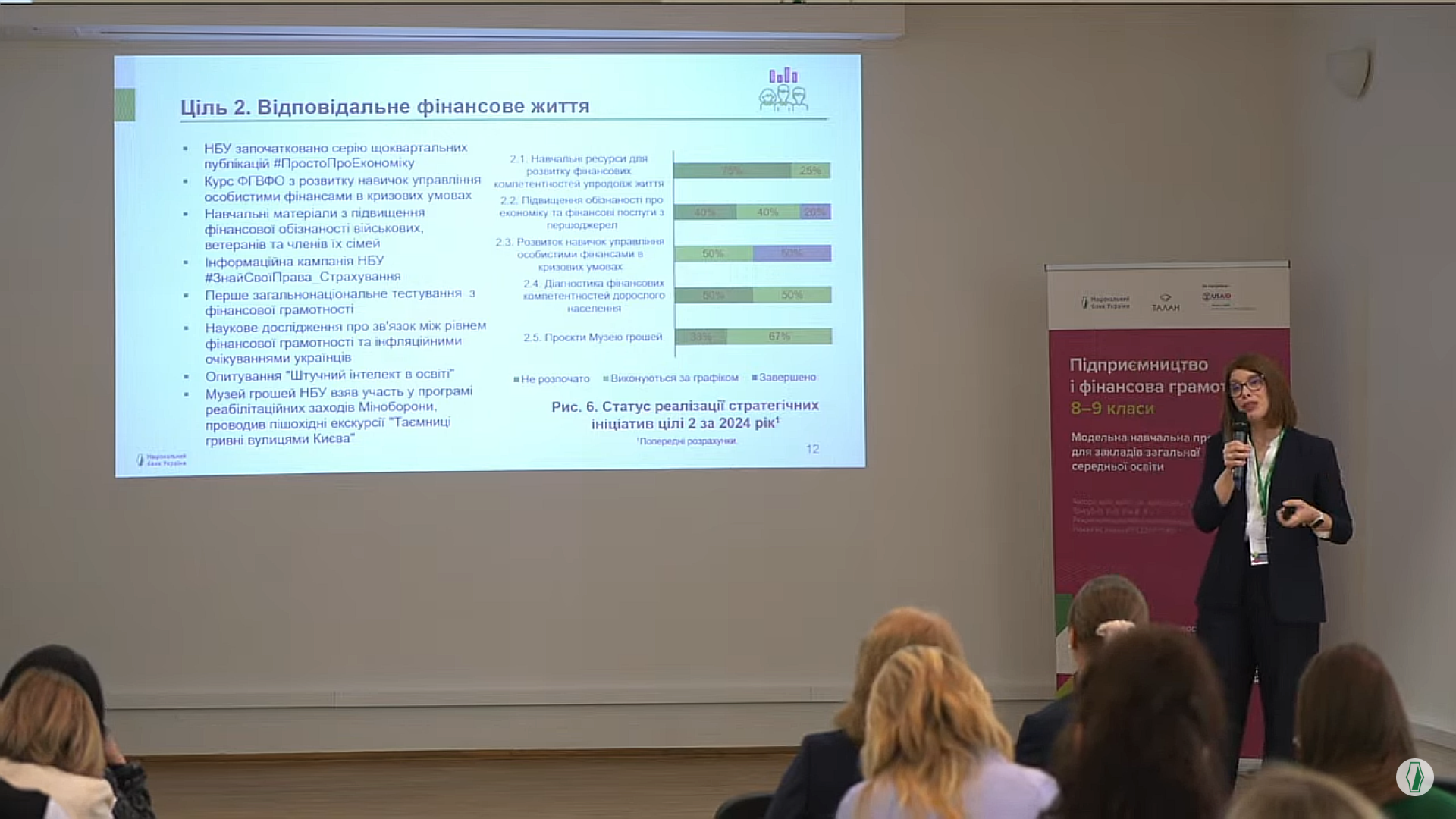 Обговорювалися Національна стратегія розвитку фінансової грамотності до 2030 року, напрями підвищення фінансової грамотності населення, впровадження предмету “Підприємництво і фінансова грамотність”, наукові дослідження щодо фінансової грамотності.
