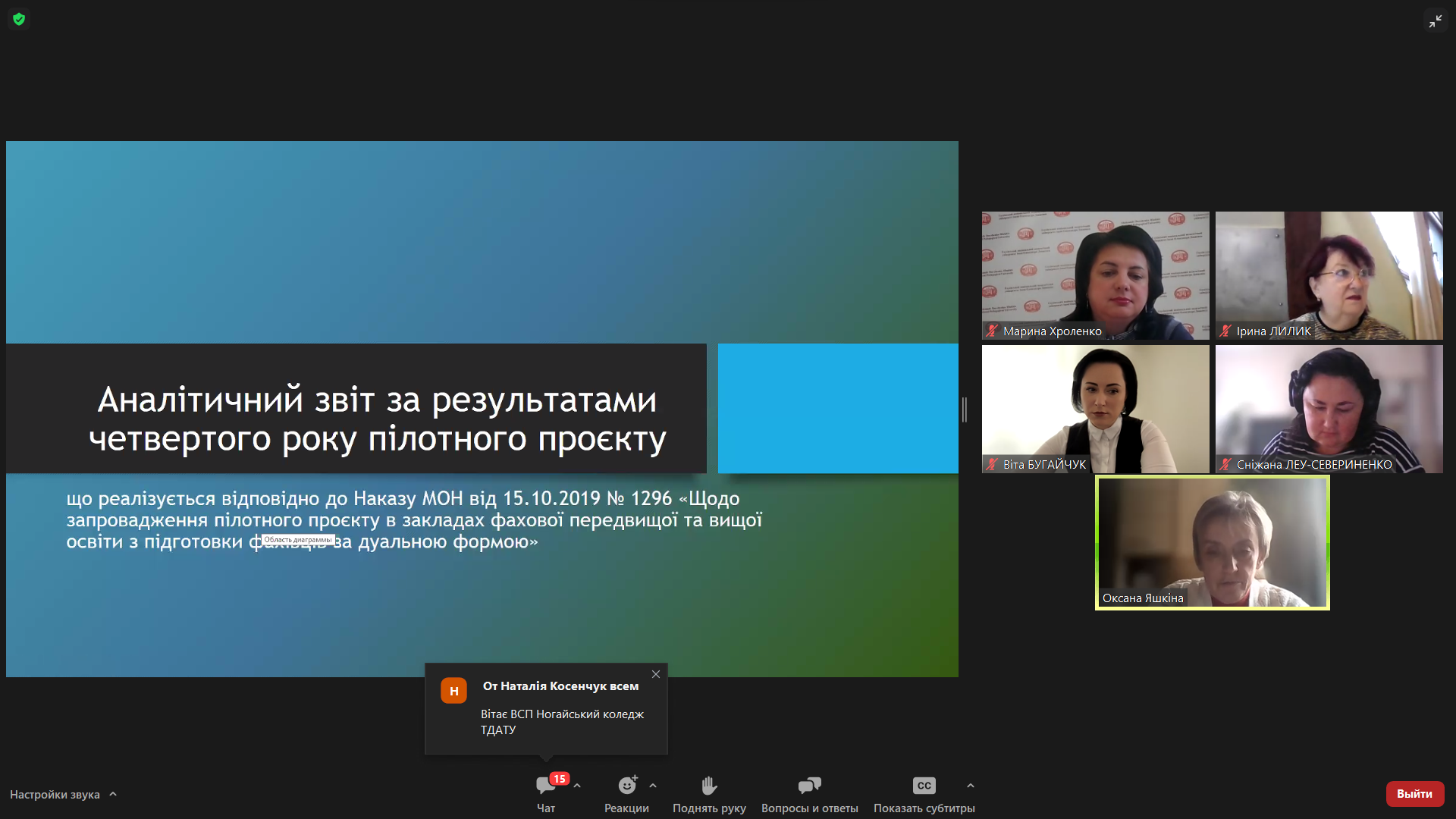 Обговорювалися підсумки пілотного проєкту; аналіз проблем та викликів упровадження підготовки фахівців за дуальною формою в закладах освіти та підприємствах-партнерах; імплементація концепції дуальної освіти в освітній процес закладів освіти; перспективи розвитку дуальної освіти в Україні.