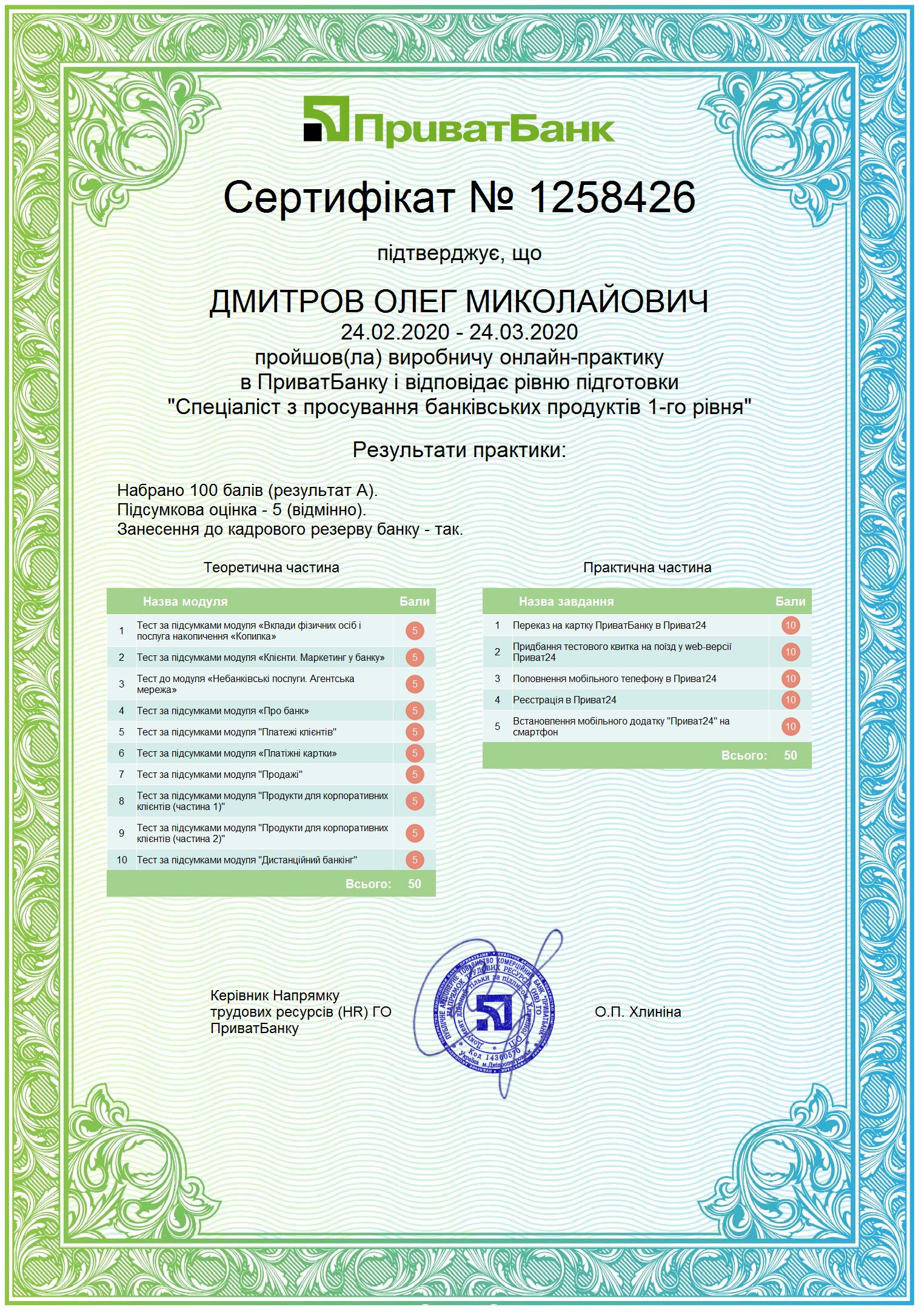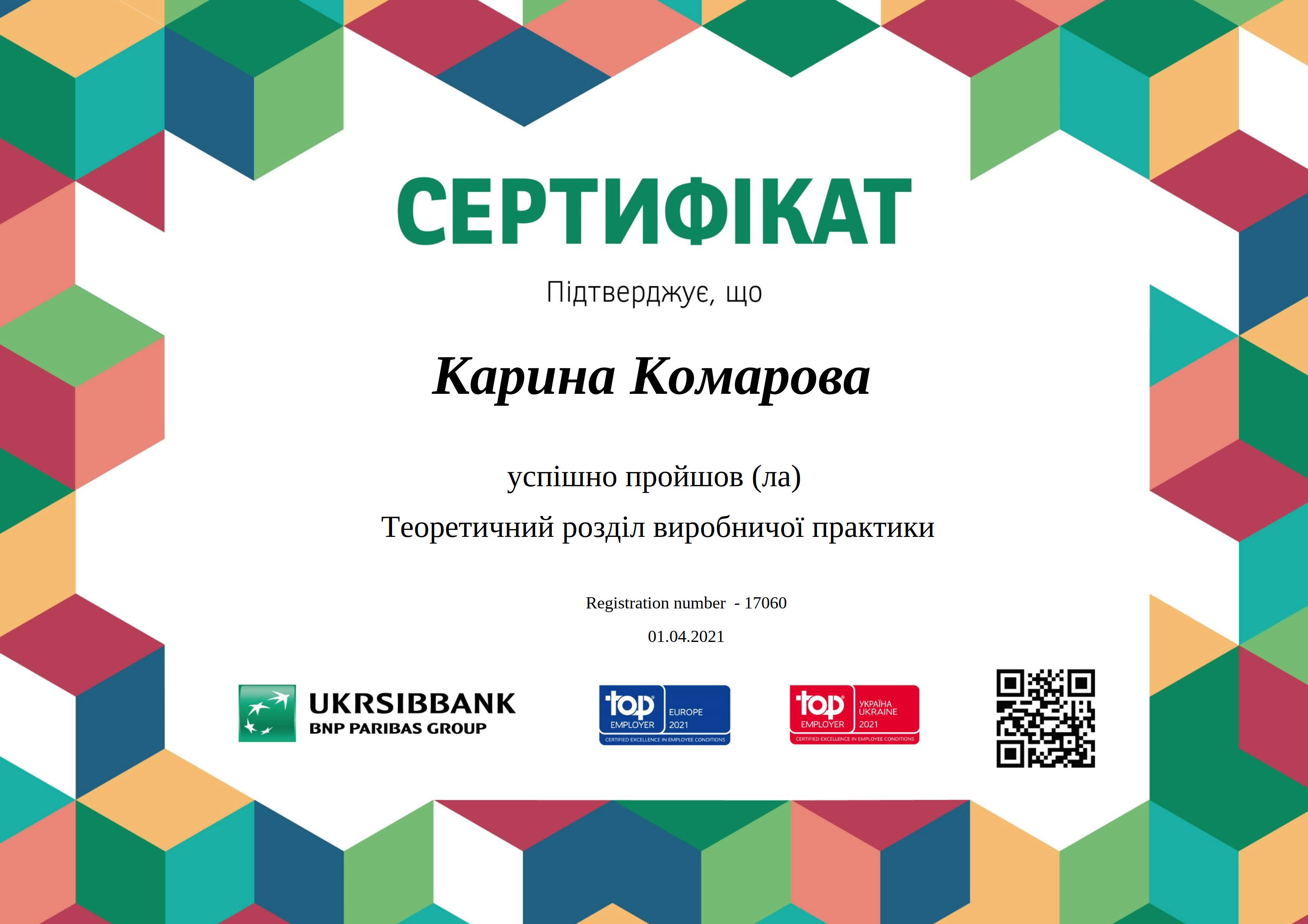 В рамках виробничих практик здобувачі освітньої програми “Фінанси, банківська справа та страхування” використовують віртуальні ресурси банківських установ АТ КБ «ПРИВАТБАНК», АТ«УКРСИББАНК» та отримують сертифікати про проходження онлайн-практик.
