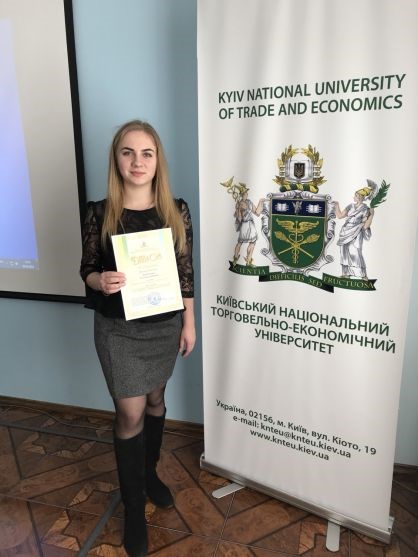 12 квітня 2018 р. – студентка 2 курсу спеціальності “Фінанси, банківська справа та страхування” Марченко Катерина прийняла участь в ІІ турі Всеукраїнського конкурсу студентських наукових робіт зі спеціальності 281 “Публічне управління та адміністрування” у 2017/2018 навчальному році, який відбувся у Київському національному торговельно-економічному університеті. За результатами захисту наукової роботи вона була нагороджена дипломом ІІ ступеня.