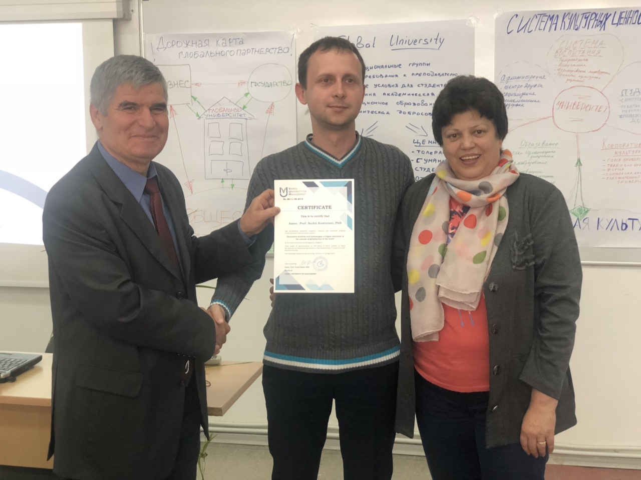 – к.е.н., доцент Косторной С.В. в 2019 році прийняв участь у міжнародній програмі підвищення кваліфікації та стажування для освітян і науковців «Інноваційні методи та технології у вищій освіті в контексті глобалізації світу» (“Innovative methods and technologies of higher education in the context of globalization of the world”), що проводилась під керівництвом проф. Д. Каменевої у Варненському університеті менеджменту (Varna University of Management) у м. Варна, Болгарія