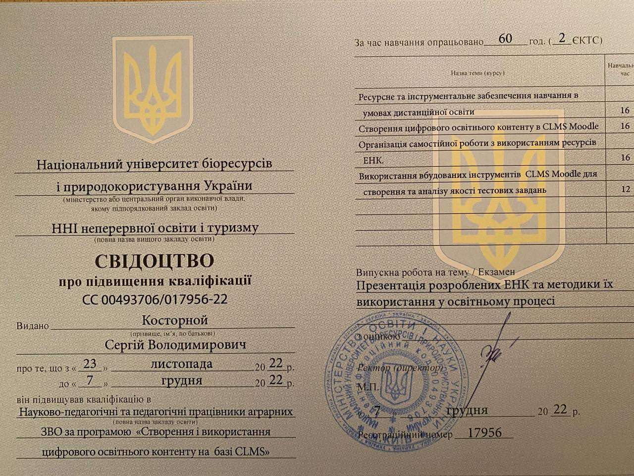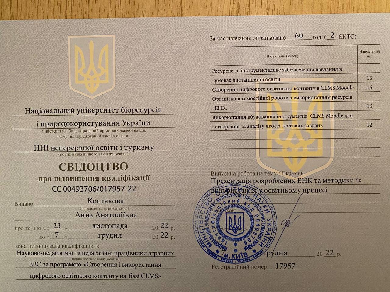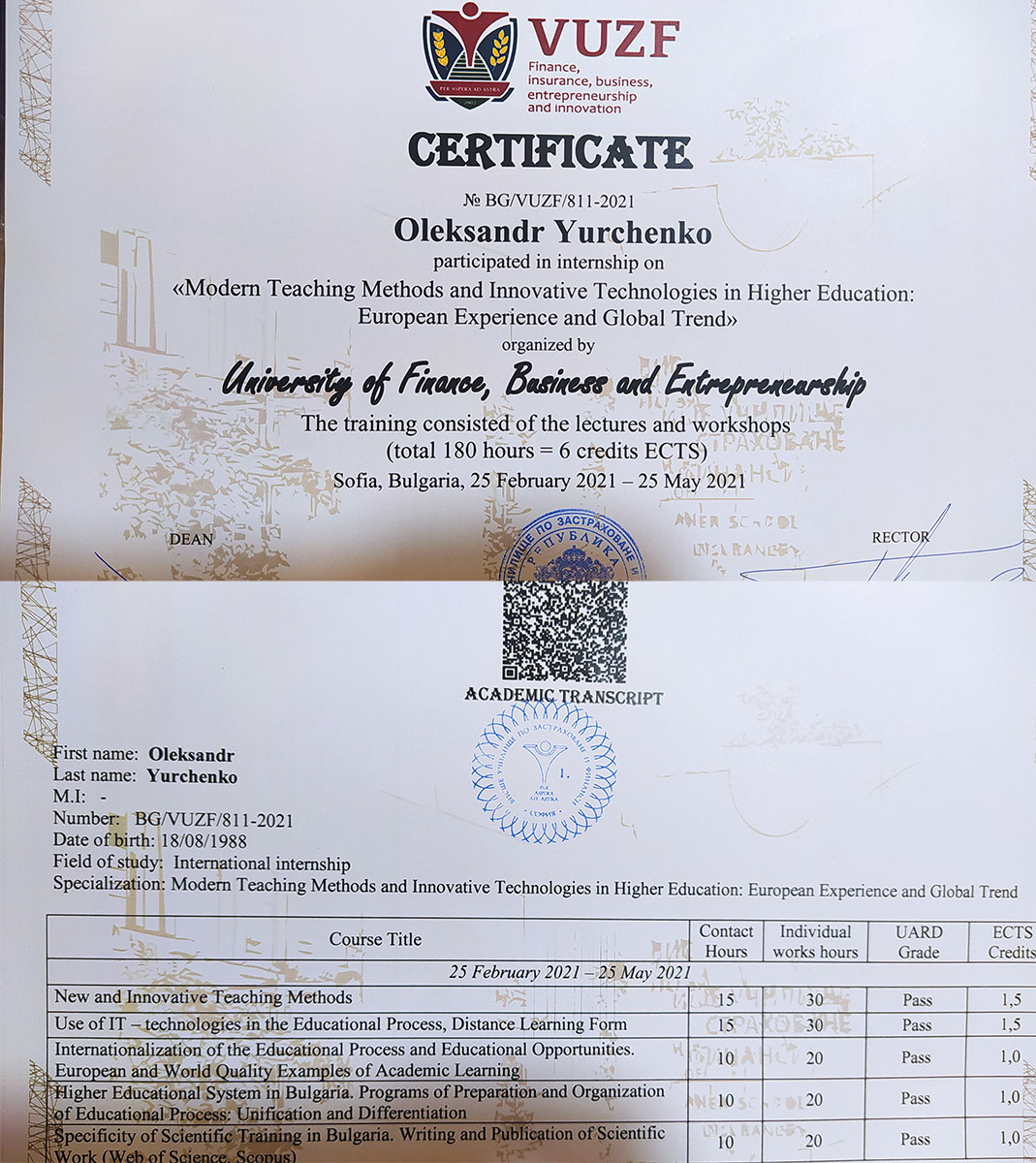 Всі види підвищення кваліфікації викладачами кафедри підтверджуються сертифікатами, свідоцтвами, довідками.