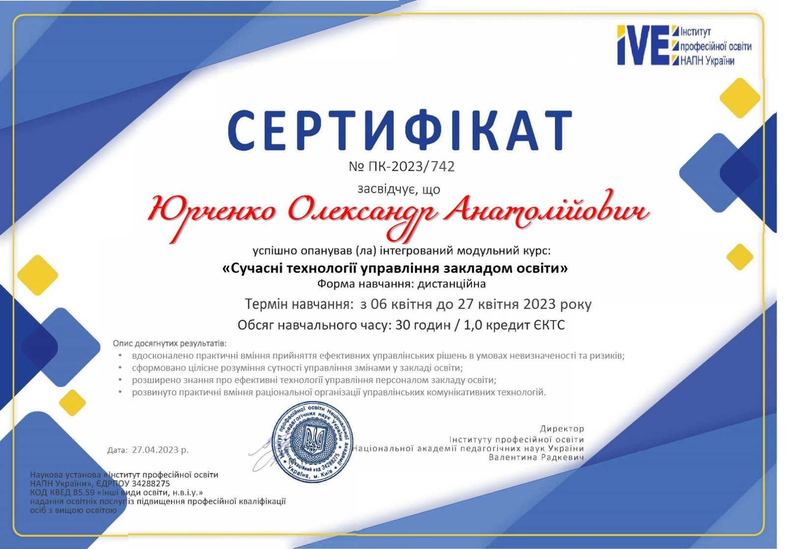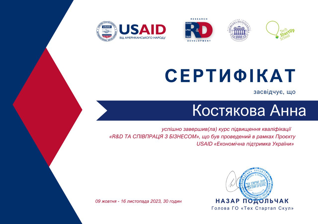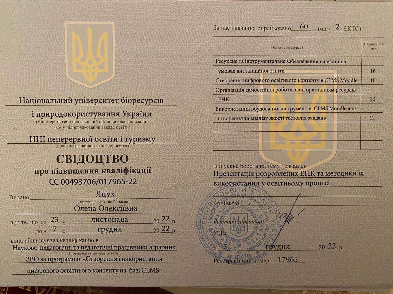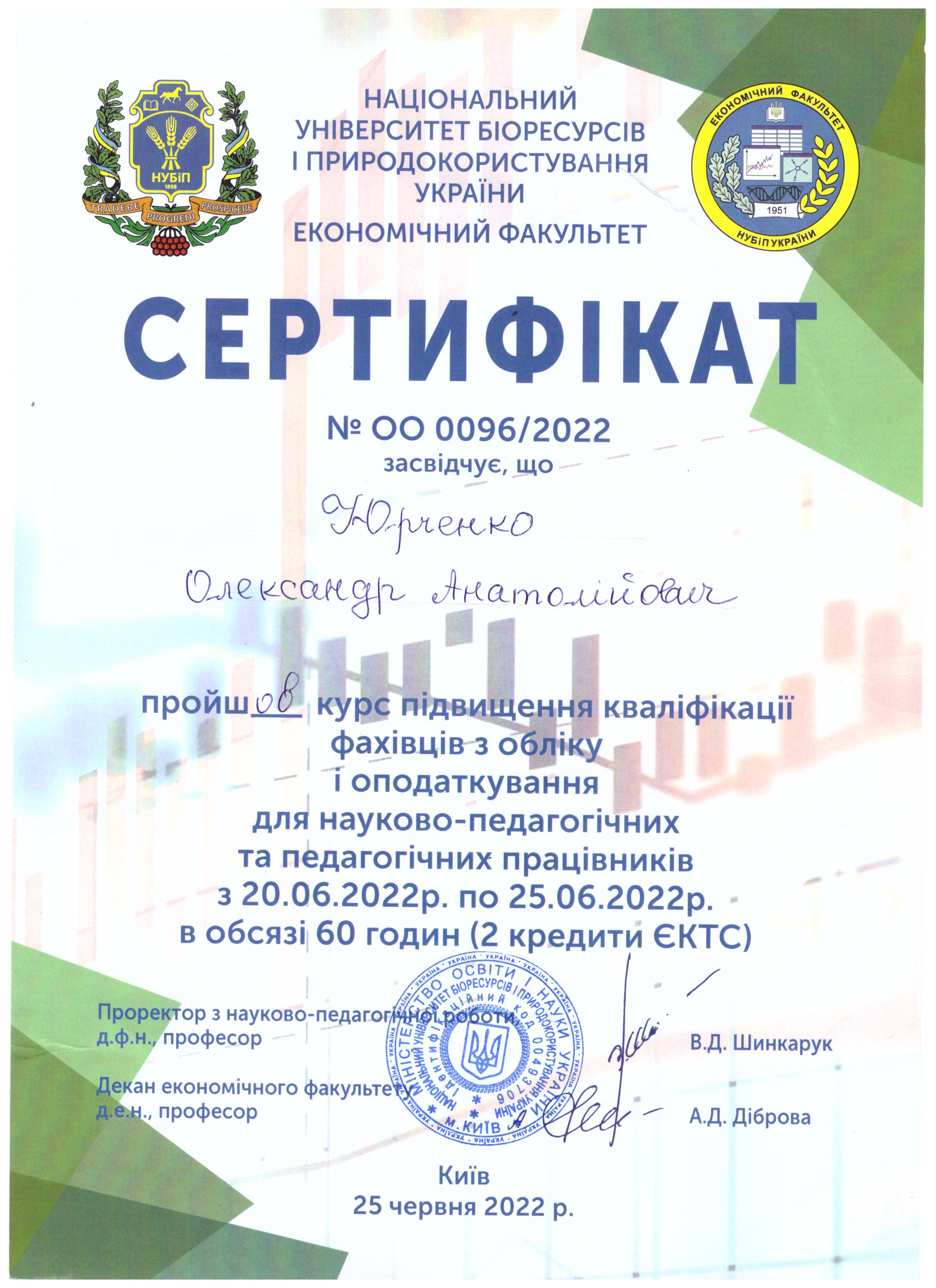 Всі види підвищення кваліфікації викладачами кафедри підтверджуються сертифікатами, свідоцтвами, довідками.