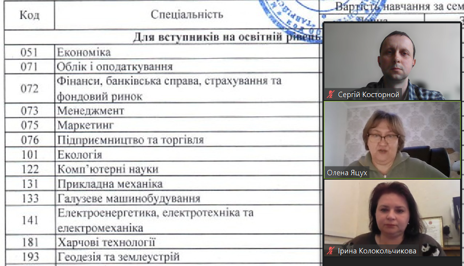 12 та 13 березня 2024 року відбулися онлайн-зустріч представників ТДАТУ зі студентами ВСП «Оріхівський фаховий коледж ТДАТУ» та ВСП «Ногайський фаховий коледж ТДАТУ», які в цьому році завершують навчання за спеціальностями 071 «Облік і оподаткування», 072 «Фінанси, банківська справа та страхування», 075 «Маркетинг».