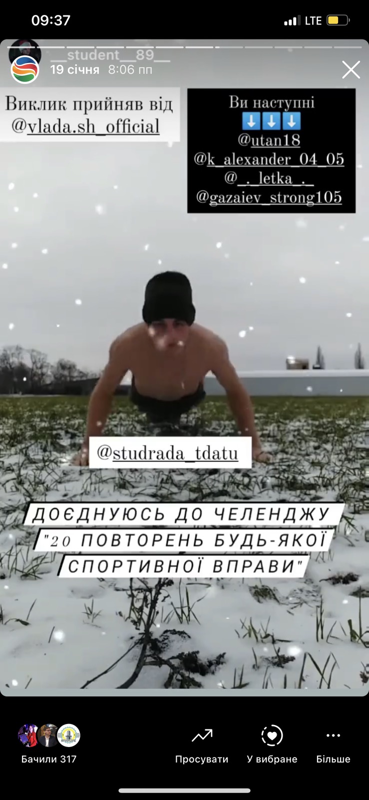 Флешмоб-челендж «20 повторів будь-якої спортивної вправи» від студради ТДАТУ