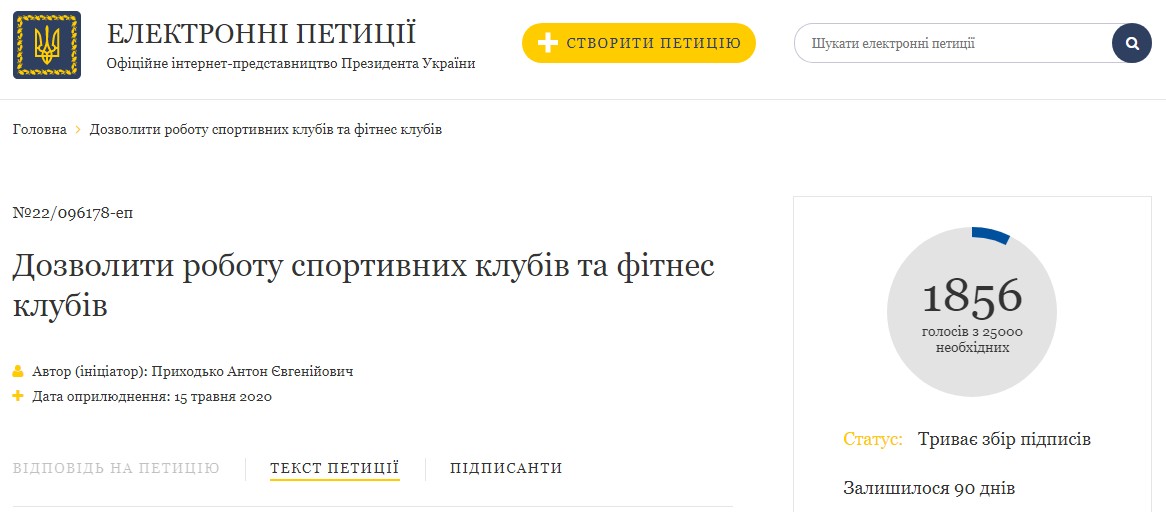 Кафедра фізичного виховання і спорту Таврійського державного агротехнологічного університету імені Дмитра Моторного звертається до усіх цінувачів спорту та фізичної культури (тренерів, викладачів фізичної культури та фізичного виховання, спортсменів та аматорів спорту, шанувальників та вболівальників різноманітних видів спорту і просто небайдужих людей) з проханням підтримати електронну петицію до Президента України №22/096178-еп “Дозволити роботу спортивних клубів та фітнес-клубів”. Залишилось 90 днів, і на цей час її вже підписали 1856 осіб. Кожен голос надзвичайно важливий! Нагадуємо, аби електронне звернення розглянули в Адміністрації президента, воно має зібрати щонайменше 25 тисяч підписів.