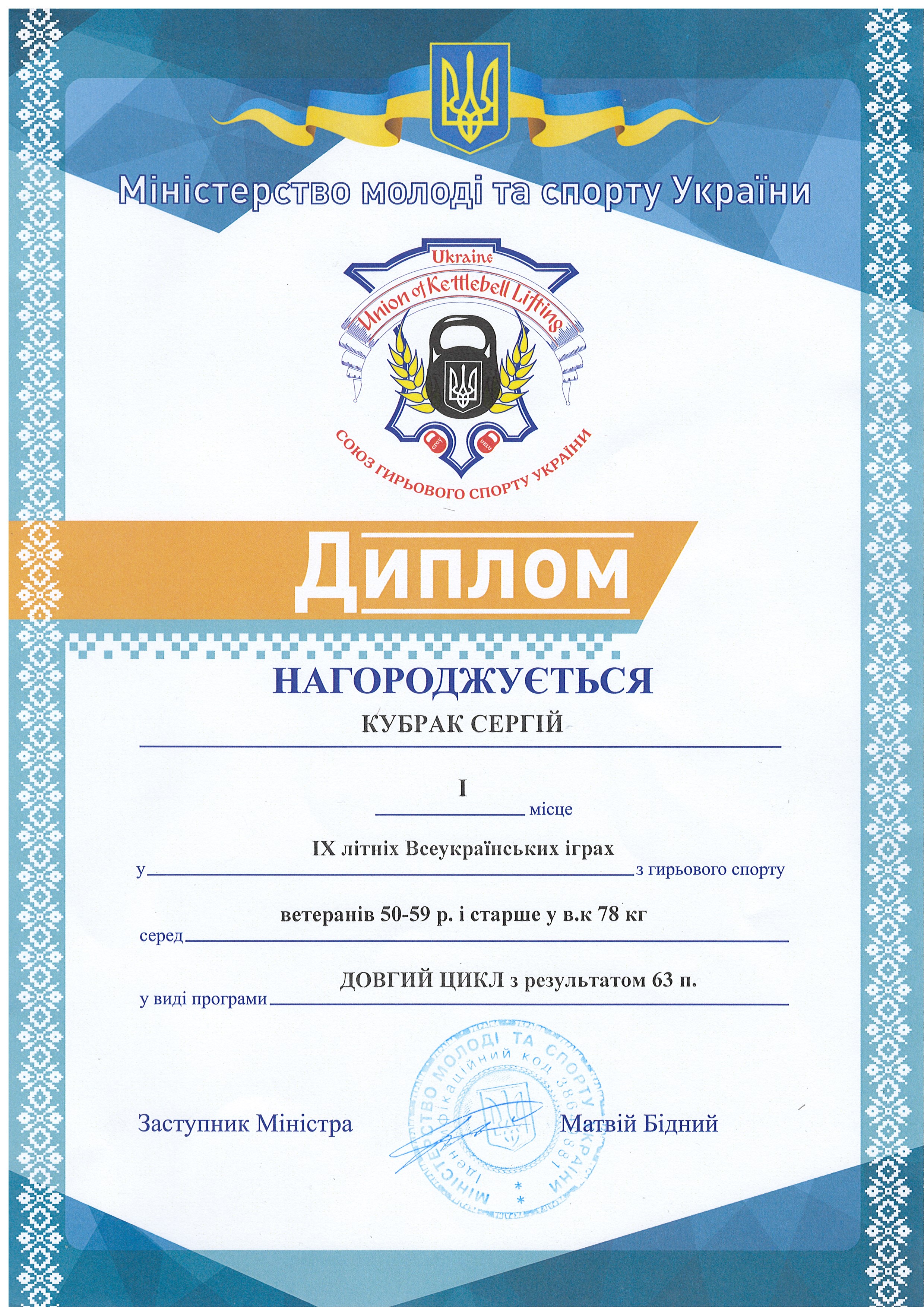 Головний тренер збірної команди ТДАТУ з гирьового спорту – заслужений тренер України з гирьового спорту, майстер спорту України міжнародного класу, старший викладач кафедри фізичного виховання і спорту КУБРАК СЕРГІЙ ІВАНОВИЧ