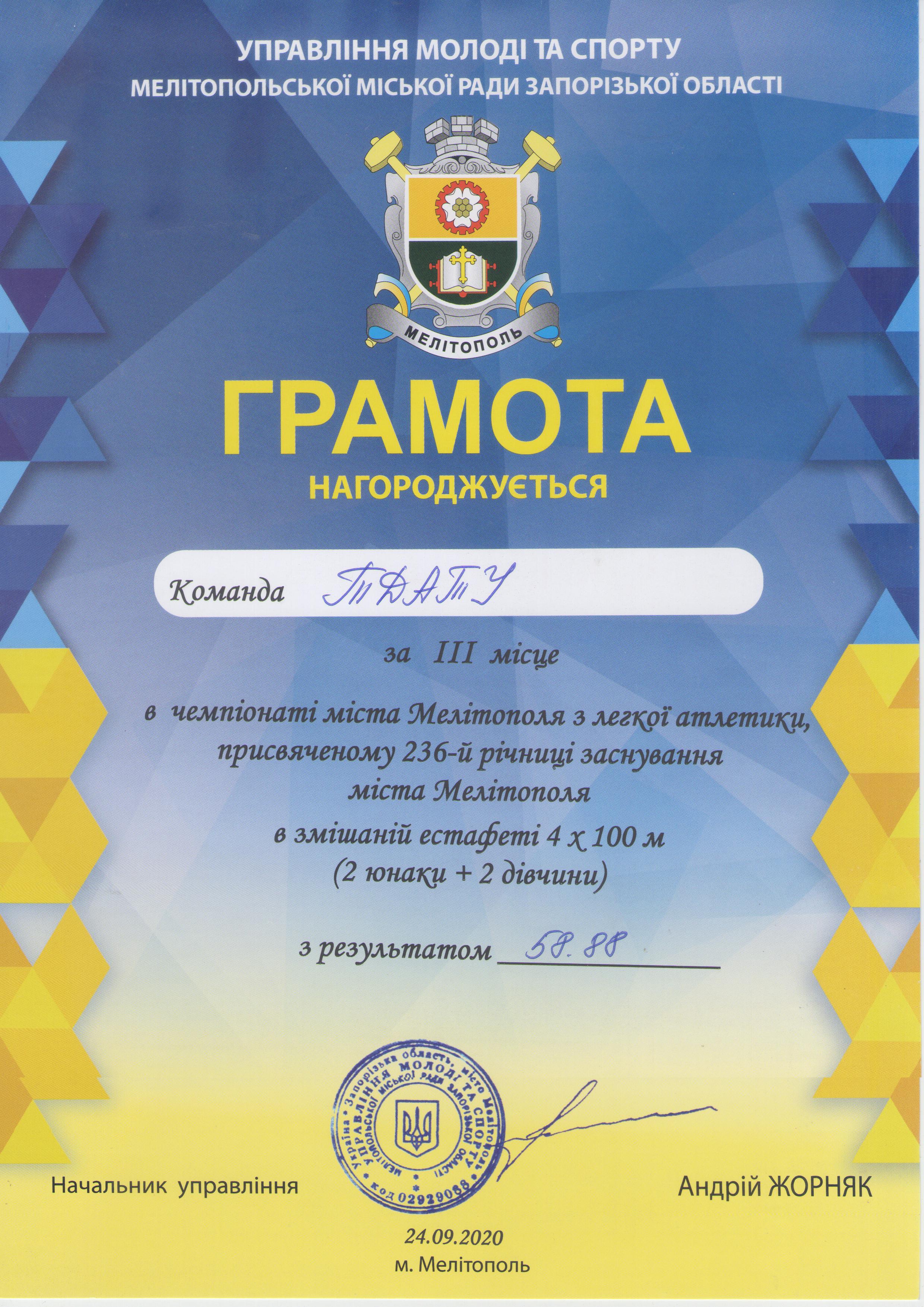 3. Чемпіонат міста Мелітополя з легкої атлетики, присвячений 236-й річниці заснування міста Мелітополя (24.09.2020 р.):