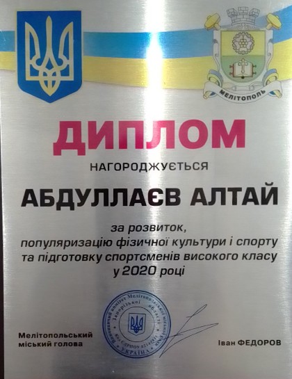 24 грудня 2020 року старший викладач Абдуллаєв А.К. отримав Диплом за розвиток, популяризацію фізичної культури і спорту та підготовку спортсменів високого класу у 2020 році від Мелітопольського міського голови Федорова Івана