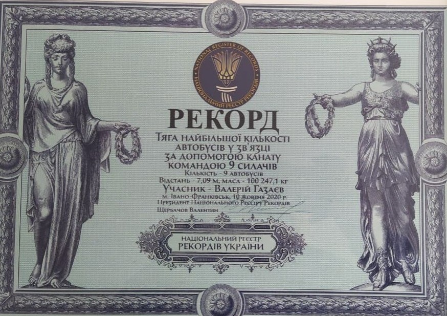 10 жовтня 2020 року у м. Івано-Франківськ завідувач кафедри Газаєв В.Н. установив Національний рекорд України в тязі найбільшій кількості автобусів у зв’язці за допомогою канату командою 9 силачів (кількість – 9 автобусів, відстань – 7,09 метрів, маса – 100 247,1 кг)