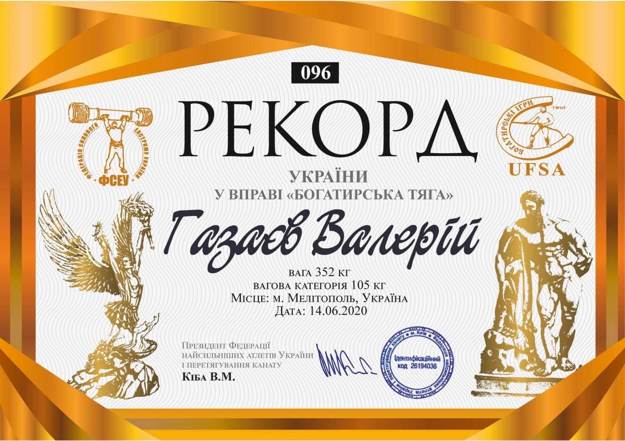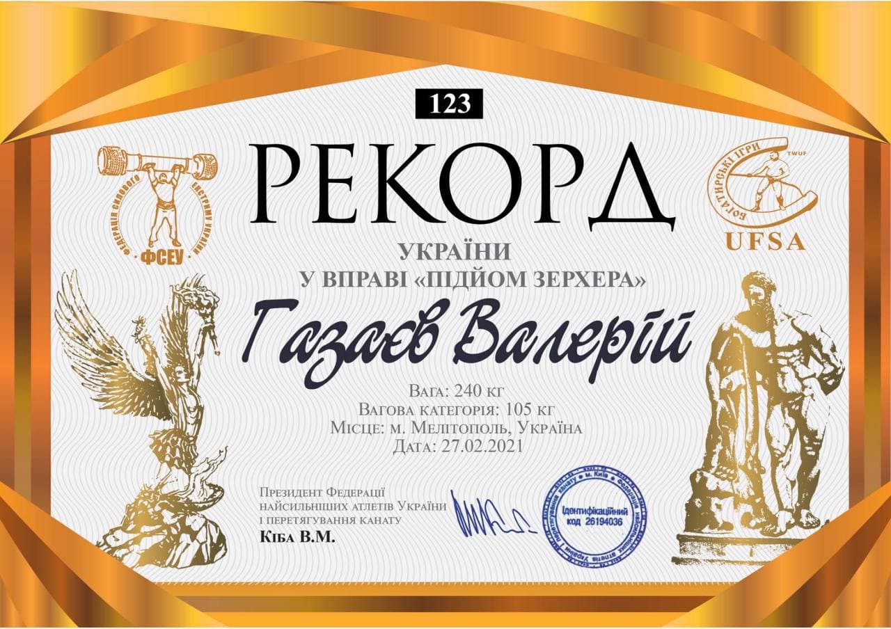 27 лютого 2021 року на IV Всеукраїнському турнірі “Силачі старої школи” з богатирського багатоборства (м. Мелітополь) завідувач кафедри Газаєв В.Н. установив 2 рекорди України у вправі “Підйом Зерхера” (вага – 232 кг і 240 кг, вагова категорія – до 105 кг) – РЕКОРД 1, РЕКОРД 2
