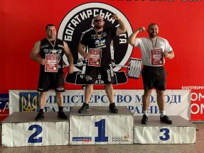 - СКРИПЧЕНКО ОЛЕКСАНДР – Чемпіон України (вчетверте поспіль) у ваговій категорії до 90 кг (2 рекорди України: Лог Ліфт (підйом металевої колоди вагою 120 кг – 6 повторів за 60 секунд) та Прогулянка Фермера (прохід на 40 метрів з вагою 120 кг в обох руках за 17,69 секунди);