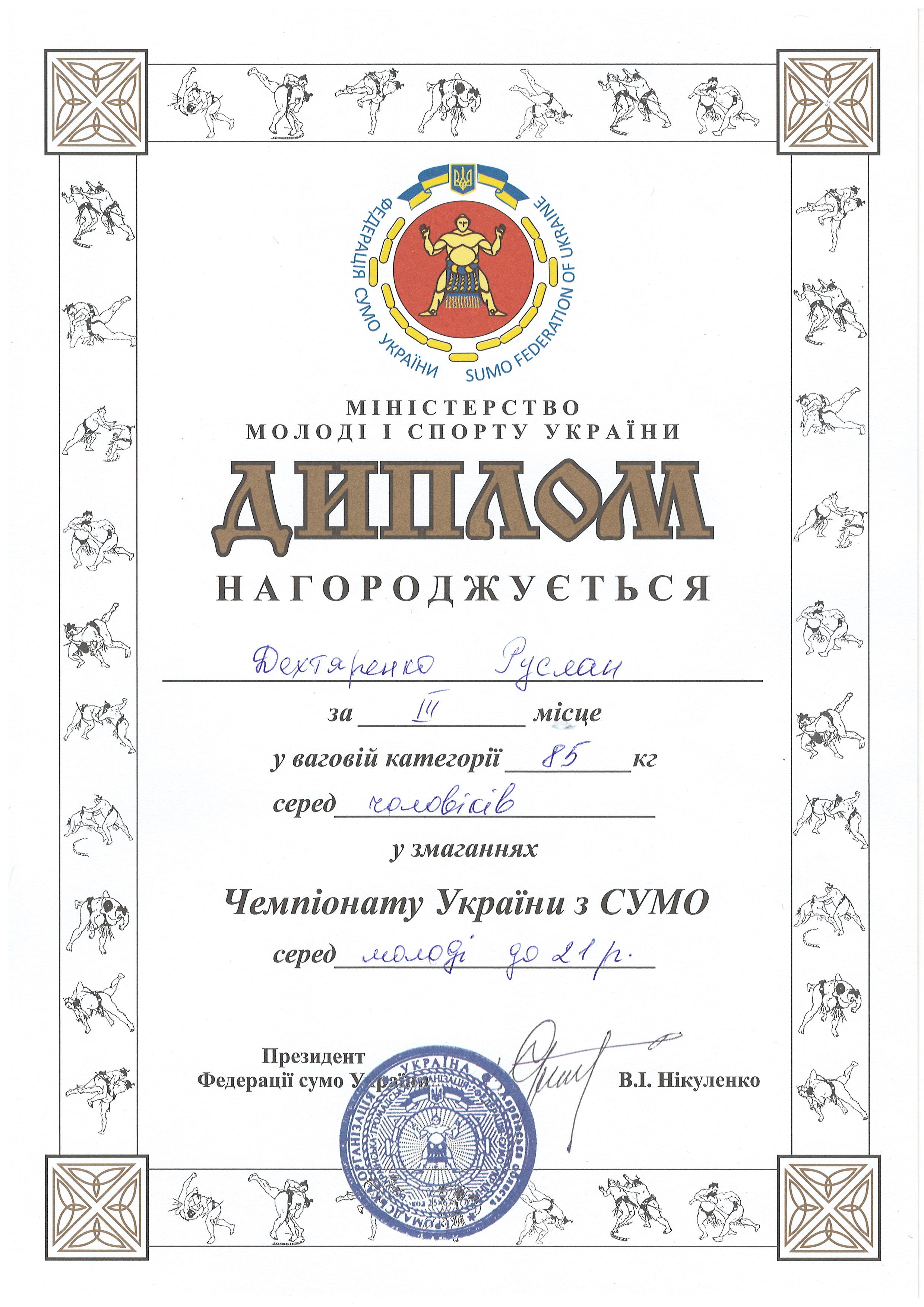 ДЕХТЯРЕНКО РУСЛАН (41 ЕЕ) – “Майстер спорту України з сумо” (наказ Міністерства культури, молоді та спорту України №1717 від 25.05.2021 р., посвідчення №1930) – ПОСВІДЧЕННЯ, НОВИНА НА САЙТІ УНІВЕРСИТЕТУ