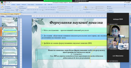 Відповідно до заявленої тематики Наталя Леонідівна виступила з доповіддю «Наукова новизна як методологічна характеристика наукового дослідження», де акцентувала увагу слухачів на особливостях методологічного апарату наукового дослідження.