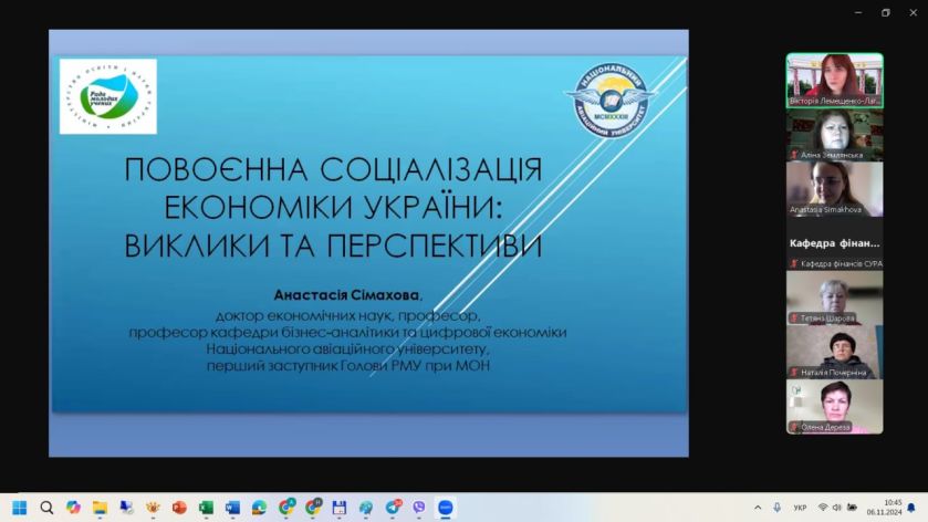 Під час лекції були висвітлені ключові виклики, можливості та перспективи, з якими зіштовхується українська економіка в умовах відбудови після війни, розглядалися основні напрями, що визначатимуть відновлення української економіки: відбудова інфраструктури, підтримка підприємництва та самозайнятості населення, залучення іноземних інвестицій та роль міжнародної допомоги. Окрему увагу приділено соціальним аспектам економічної політики, зокрема забезпеченню стабільної зайнятості, підтримці ветеранів, переселенців та соціально вразливих груп населення, а також розширенню можливостей для молоді. Лекторка акцентувала увагу аудиторії на необхідності імплементації нової моделі економічного зростання, яка буде більш орієнтованою на соціальну справедливість та сталий розвиток країни.