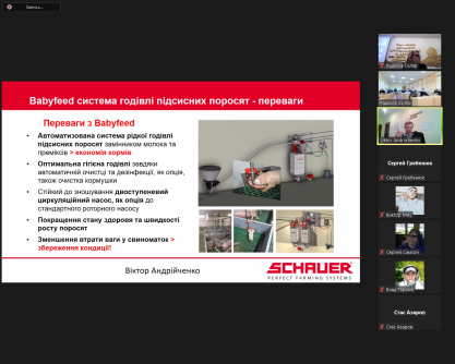 Пан Віктор на початку свого виступу коротко зупинився на історії заснування підприємства та розвитку компанії в нашій країні. Лекція складалася з двох частин: «Комп’ютеризовані системи годівлі поросних свиноматок в групах» та «Система годівлі поросят до відлучення». Лектор детально зупинився на особливостях застосування системи групового утримання і годівлі Compident – ефективної для годівлі поросних свиноматок, відповідно до потреби. Вона допомагає підтримувати кожну тварину в оптимальній кондиції, що позитивно впливає на здоров’я свиноматки та підвищує кількість опоросів протягом її життя.
