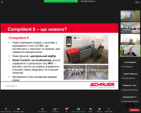 Пан Віктор на початку свого виступу коротко зупинився на історії заснування підприємства та розвитку компанії в нашій країні. Лекція складалася з двох частин: «Комп’ютеризовані системи годівлі поросних свиноматок в групах» та «Система годівлі поросят до відлучення». Лектор детально зупинився на особливостях застосування системи групового утримання і годівлі Compident – ефективної для годівлі поросних свиноматок, відповідно до потреби. Вона допомагає підтримувати кожну тварину в оптимальній кондиції, що позитивно впливає на здоров’я свиноматки та підвищує кількість опоросів протягом її життя.