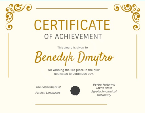 Студенти були ознайомлені з історією свята, подивились відеоролік про святкування Дня Колумба в Нью-Йорку та перевірили свої знання та вдачу, змагаючись у вікторині, створеній викладачем на платформі Kahoot.