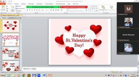 And it has already become a tradition in English language classes. The senior teacher Iryna Kryvonos congratulates her students (41FT, 31FT, 32SAE) on this holiday. This year, she prepared for students a festive presentation about unusual traditions and a fun quiz about the symbols of Valentine’s Day. Students recalled how they celebrated this holiday at school and what the holiday was like while studying at their native university. They even showed photos from the photo zone of the Faculty of Agricultural Technologies and Ecology for February 14, 2021.