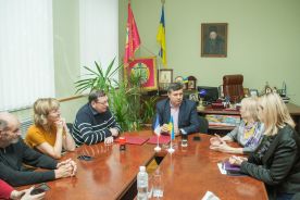 24.09.19. доцент кафедри іноземних мов Караєва Т.В. забезпечувала переклад на перемовинах представників ректорату ТДАТУ – д.т.н., професора Кюрчева В.М, проректора з науково-педагогічної роботи к.т.н. Ломейка О.П. та директора інституту підвищення кваліфікації Подшивалова Г.В. з Тімом Медіганом – представником американського проекту «Економічна підтримка Східної України» (US AID) щодо співробітництва між US AID та ТДАТУ, зокрема щодо перспектив налагодження контактів в сфері обміну досвідом та участі викладачів та студентів ТДАТУ у спільних проектах з полепшення матеріальної бази університету.