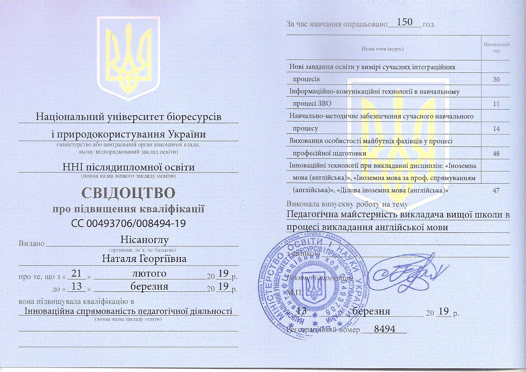 Усі викладачі кафедри є членами професійних об’єднань (IATEFL (International Association of Teachers of English as a Foreign Language – Міжнародної асоціації викладачів англійської мови як іноземної, TESOL-Ukraine – Teaching English for Speakers of Other Languages, Асоціації викладачів французької мови України та Міжнародної федерації викладачів французької мови) , а також постійно беруть участь у тренінгах, стажуваннях та вебінарах з планування навчальної діяльності у рамках цілих курсів з дисциплін та окремих тематичних занять, імплементації інноваційних методик та прийомів у підготовку студентів з усіх видів мовленнєвої діяльності (говорінні, читанні, письмі, аудіюванні), а також презентації результатів власної навчальної та дослідницької діяльності іноземними мовами.
