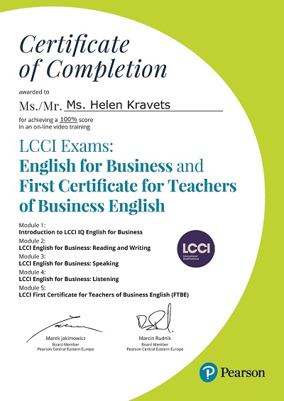 - English for Business and First Certificate for Teachers of Business English (Certificate of Completion LCCI Exams)