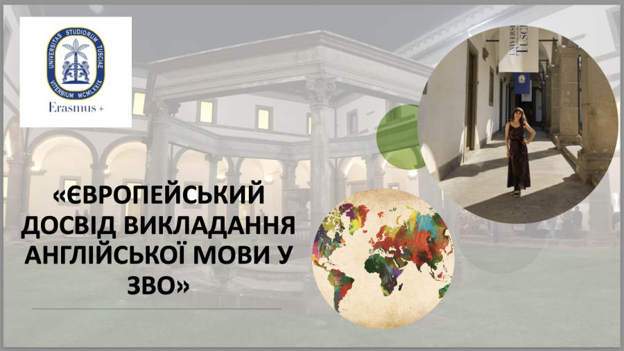 Нещодавно на кафедрі «Іноземні мови» відбулась презентація «Європейський досвід викладання англійської мови у закладах вищої освіти». Старший викладач кафедри Вікторія Лемещенко-Лагода презентувала свій звіт, сформований в результаті проходження стажування у рамках програми академічної мобільності Еразмус+ в Університеті Тушії (Вітербо, Італія).